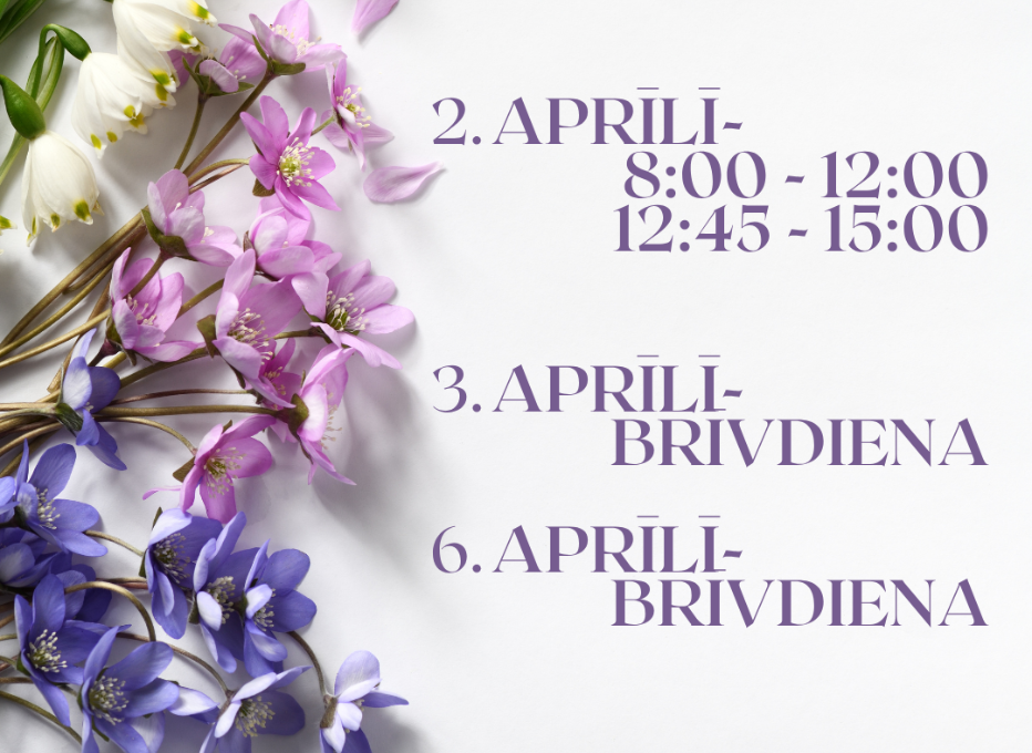 2. aprīlī - 8:00 - 12:00; 12:45 - 17:00